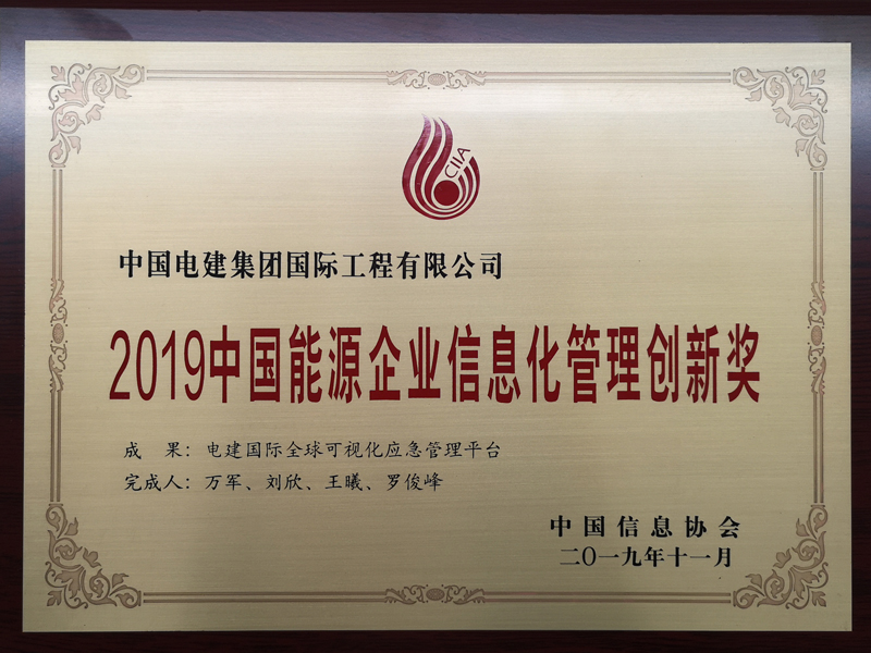 2019中國(guó)能源企業(yè)信息化管理創(chuàng)新獎(jiǎng)