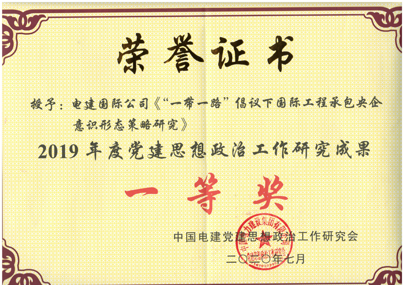 中國(guó)電建2019年度黨建思想政治工作課題研究成果一等獎(jiǎng)