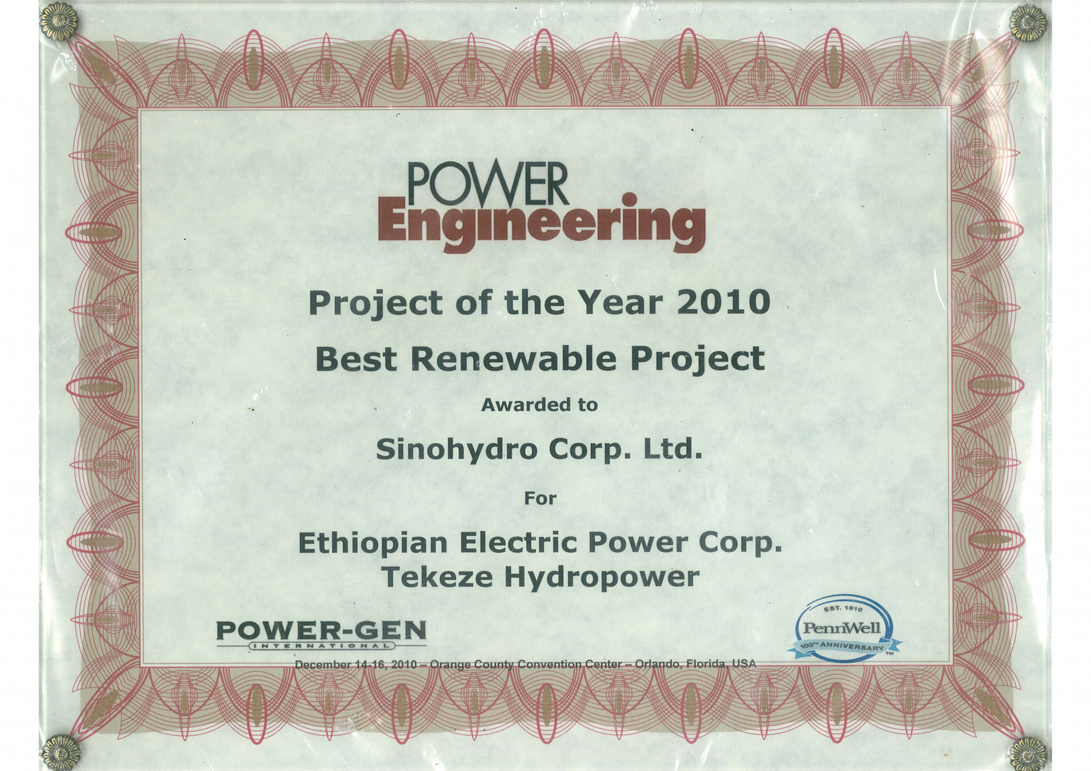 公司承建的埃塞俄比亞泰克則水電站獲可再生電力工程項目獎