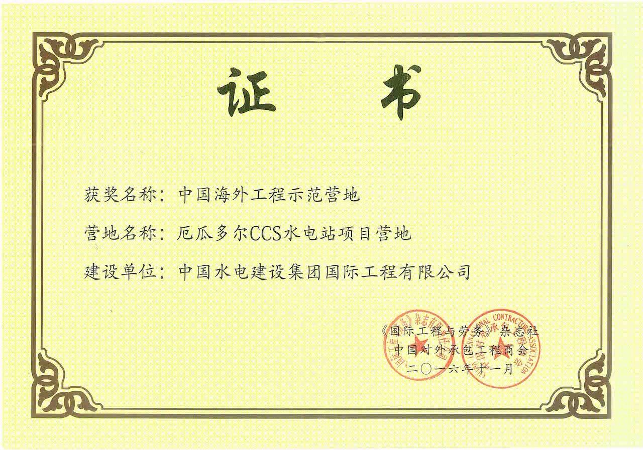 公司承建的厄瓜多爾CCS項目獲示范營地獎