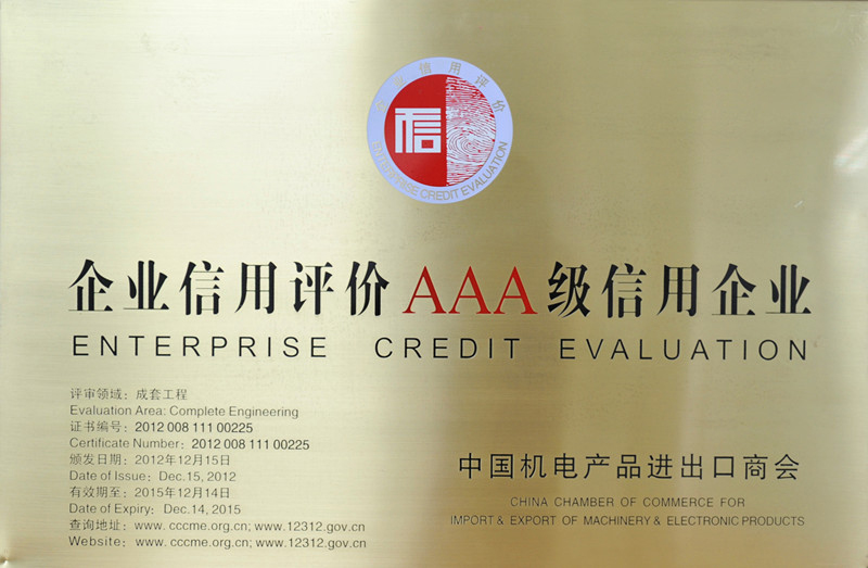 公司連續多年被評為企業信用評價3A級信用企業