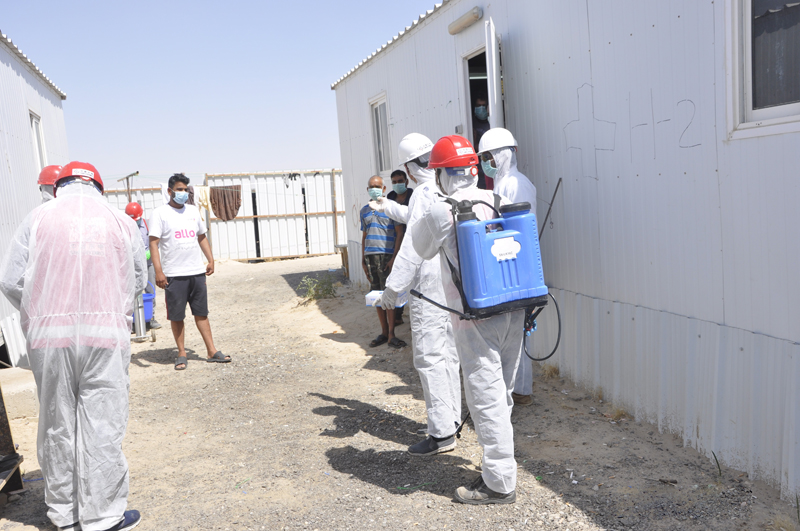 面對新冠肺炎疫情,中國電建科威特代表處與各成員企業駐外機構和項目部高度重視,積極部署。通過研判當地疫情形勢的發展和開展防疫防控學習講座,在科電建人認識到,防疫防控工作已經轉化為一個常態化的重點工作。為此,科威特代表處、各成員企業駐外機構和各項目部在疫情聯防聯控專題工作會和各類例會上均多次強調,要求項目部班子成員,各部門、工區主任切實把責任扛起來,扎實細致地把各項工作安排沉下去、落到人、嚴到位。杜絕出現上報數據不準確、人員情況動態不掌握,防控措施落實不到位、政策信息傳達不清楚的“四不現象”發生,要求全體員工從思想和行動上重視防疫防控工作并嚴格按照防控措施要求配合好各項工作的落實,堅決防止“兩不”發生、落實“兩穩”要求,確保電建在科人員實現“零感染、零報告”。