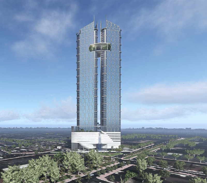 皇家一號商業綜合體項目位于金邊市中心。設計高度為245米,設有地下6層樓和地上62層樓,為雙塔結構。建成后將成為匯集五星級酒店、高級住宅、辦公樓與大型購物商場于一體的金邊市地標性建筑。