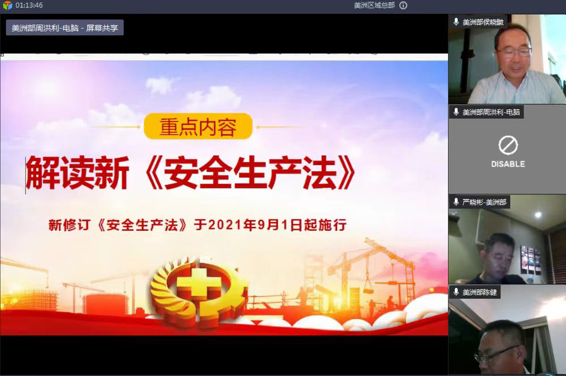 6月8日,公司副總經理、美洲區域總部總經理侯曉暾組織開展區域總部“安全生產月”啟動儀式,期間套開美洲區域總部2022年第二次HSE管理委員會會議。HSE管委會領導小組聽取了區域總部上半年安全生產管理工作完成情況以及下半年工作計劃,對繼續深入開展安全生產標準化、QHSE監督檢查和專項安全生產任務作出進一步安排,審議通過了管委會成員調整事宜。“安全生產月”啟動儀式上,侯曉暾切實履行“一崗雙責”“安全第一責任人”職責,結合“安全生產月”活動主題,深入解讀新《中華人民共和國安全生產法》,號召全體領導干部認真學習新安法規定,以優異的表現貫徹落實“三管三必須”。區域總部副總經理嚴曉彬傳達了集團公司深刻吸取事故教訓從嚴從實抓好事故防范工作的要求,深刻剖析了公司2022年以來發生的境外安全生產和社會安全事件,以沉痛的安全事件為教訓,為區域總部境外項目安全生產和保障人身安全敲響警鐘。