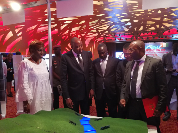 頒獎儀式結束后,唐衛斌陪同科第一夫人、副總統及總理等官員參觀駐科中資企業展臺,并在中國電建的展臺前聽取了在建的蘇布雷水電站項目執行情況及其下游梯級電站規劃開發情況的詳細介紹,第一夫人和總理閣下對中國電建及其旗下品牌——中國水電的專業水平和良好的履約能力表示贊賞,并希望中國電建能與科方一道盡快落實蘇布雷下游規劃電站的合作開發,同時加強與科特政府在其他基礎設施等領域的項目合作。